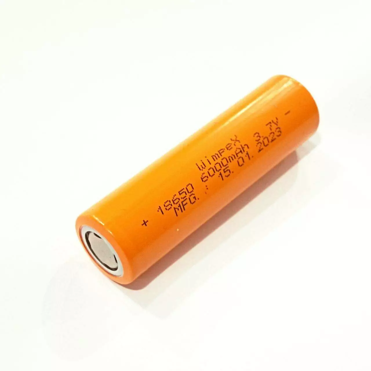 Аккумулятор Wimpex 18650 Li-ion 6000mAh 3.7V 40г. БЕЗ НОСИКА (оранжевый) реальная ёмкость меньше