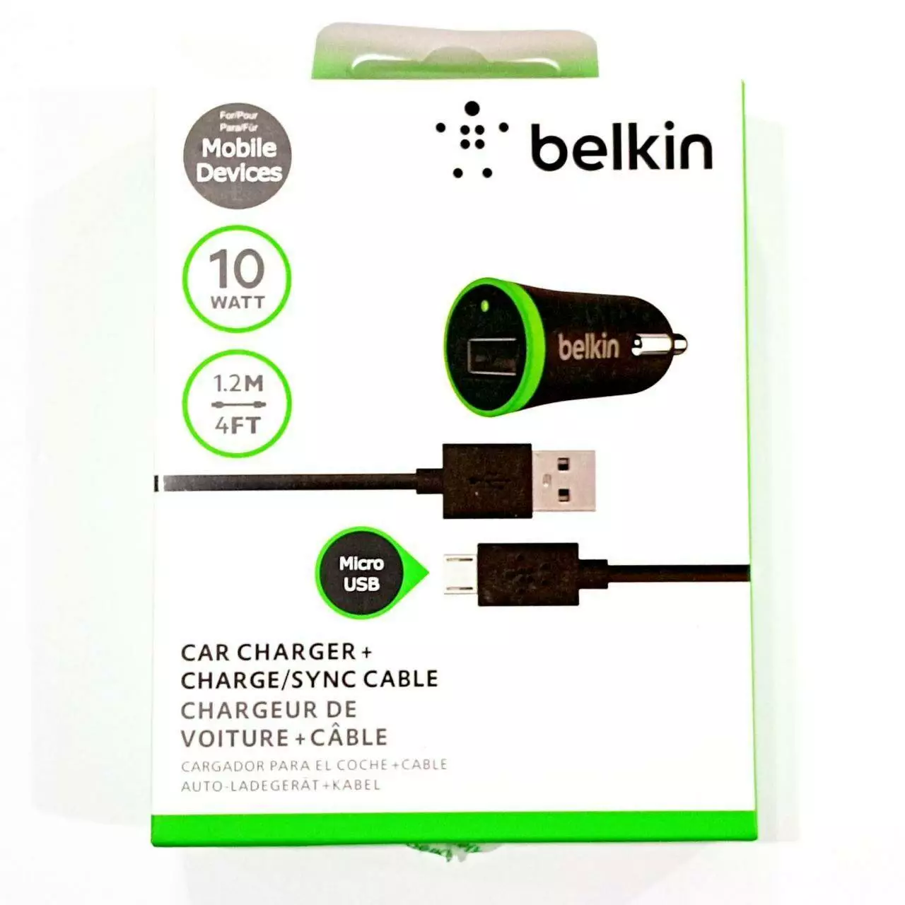 Автомобильное зарядное устройство USB x 1 belkin, 10 WATT, 1.2м кабель MicroUSB