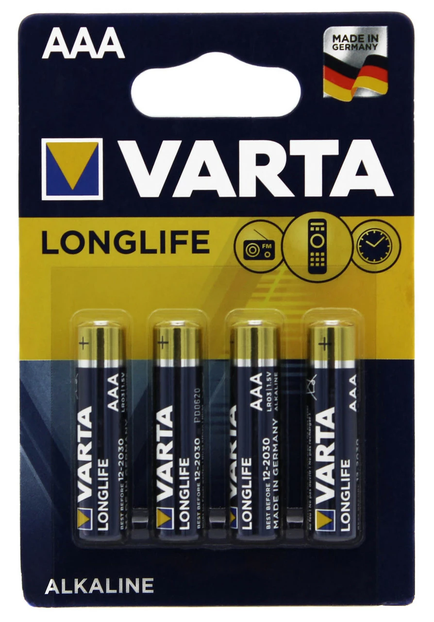 Батарейка Varta Alkaline AAA для использования в игрушках, часах, беспроводных клавиатурах, электропианино и т. п. Система «Single Press Out» позволяет легко доставать батарейки из упаковки по одной штуке. Длительный срок хранения – 7-10 лет. Температура хранения: от -40 до +50 С. Температура эксплуатации: от -30 до +50 С.