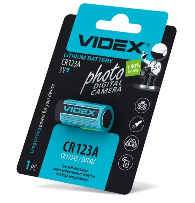 Кроме того, батарейка Videx CR123A имеет вес 16 г и может быть закуплена в количестве от 1 до 200 штук.