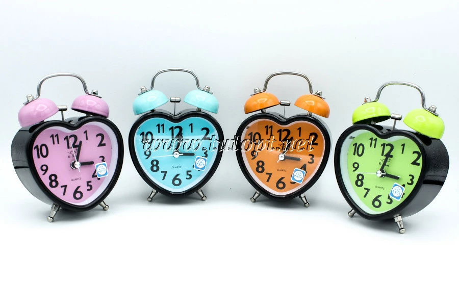Часы Будильник колокольчик "Черный, красный, розовый, зеленый" A30