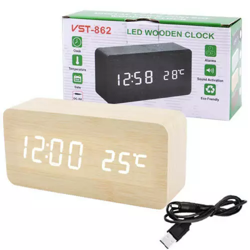Часы электронные VST-862-6 белые, (корпус желтый) температура, USB