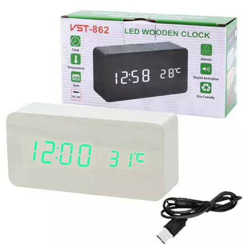 Часы электронные VST-862 зеленые, (корпус белый) температура, USB