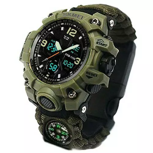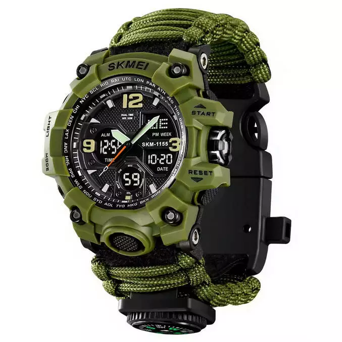 Часы наручные SKMEI PARACORD, ARMY GREEN, Compass, термометр, свисток, кресало 1155BAG, 10461