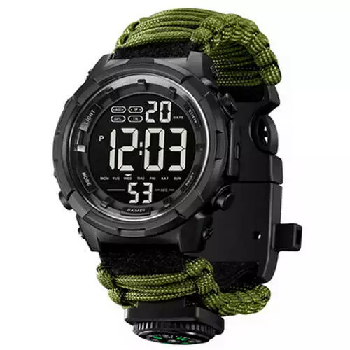Мы предлагаем часы наручные 1845AG SKMEI PARACORD в армейском зеленом цвете для мужчин и женщин, которые ищут товар по оптовым ценам для реализации его в своих магазинах в розницу.