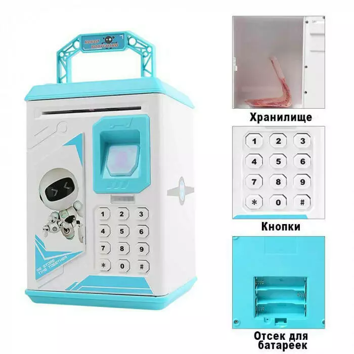 Детская копилка сейф для денег, с кодом и отпечатком пальца ROBOT