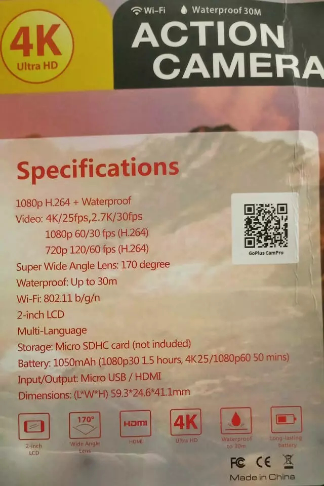 - Тип видеокамеры: Экшн-камера