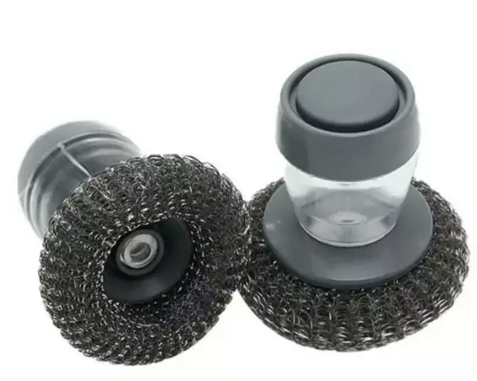 Ёршик скребок с ручкой для мытья посуды с дозатором, 8647
