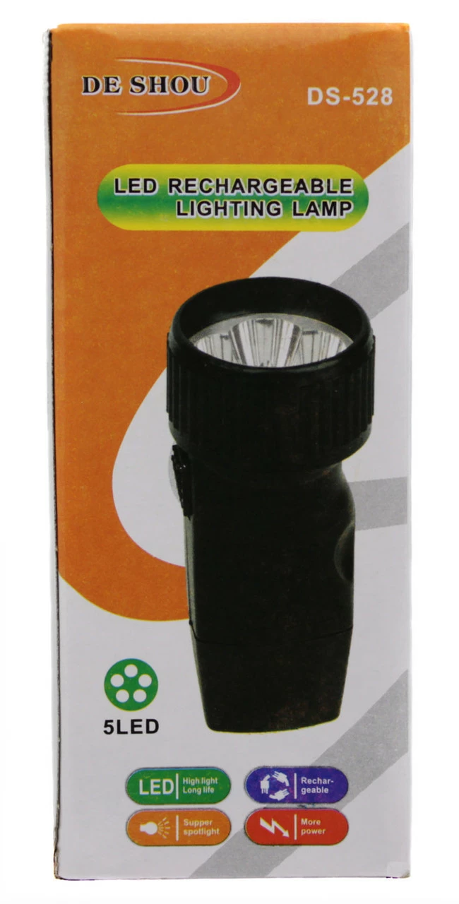 Ручной фонарик с аккумулятором – это очень полезное в быту и профессиональной деятельности устройство, обеспечивающее прекрасное освещение пространства. 5 LED ламп отвечают за яркость и дальность освещения. Автономность работы на одной зарядке составляет 9 часов. Светодиодные лампы имеют прекрасный ресурс работы (до 100 тысяч часов), 150 циклов заряда – мощность аккумулятора. Светодиодные элементы потребляют минимальное количество энергии, чем и объясняется длительность работы на одной зарядке аккумулятора. Долгое время не перегорая, фонарик не боится ударов и вибраций.