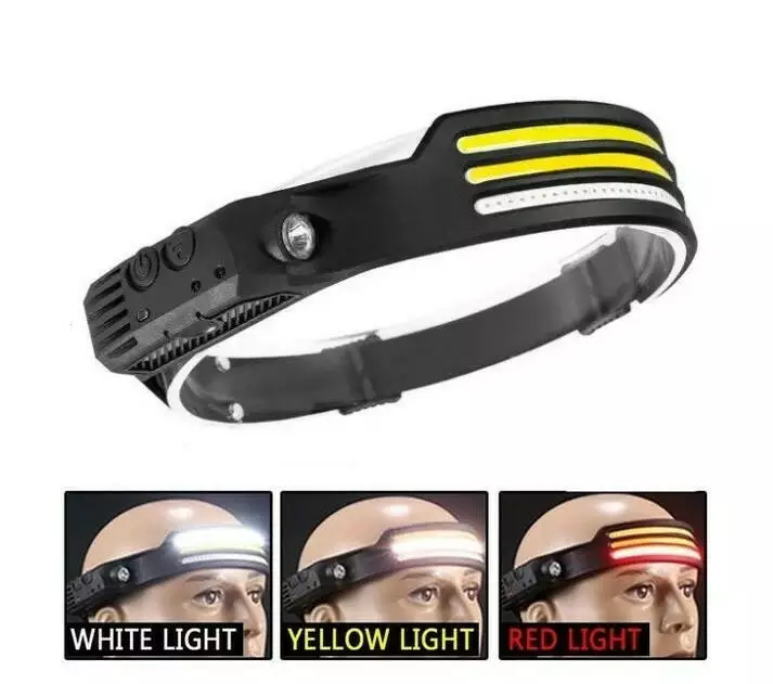 Фонарь налобный BL-W689-LM+3COB (white+yellow+red), Motion Sensor,