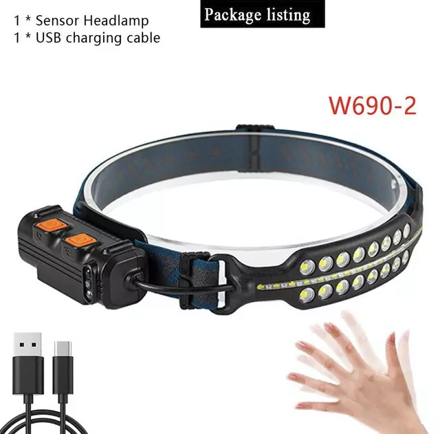 Фонарь налобный BL-W690-2-SMD (white+red), Motion Sensor, Li-Ion аккум., ЗУ Type-C