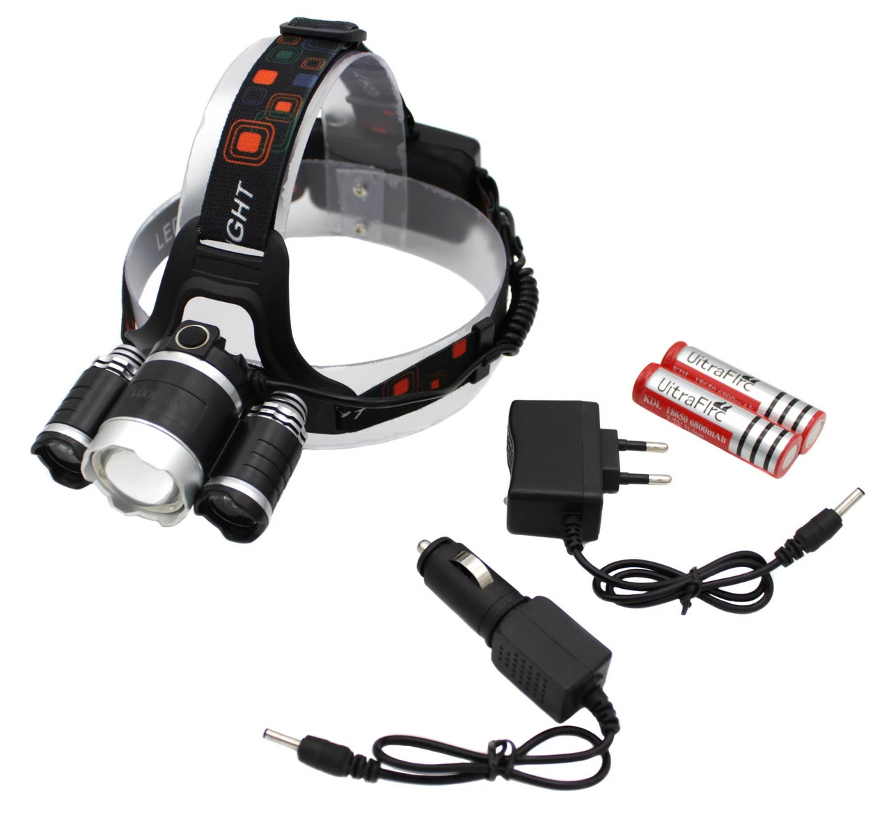 Фонарь налобный BORUIT RJ3001/ Акк./T6 LED/ZOOM/ Авто заряд/ Крепление на голову