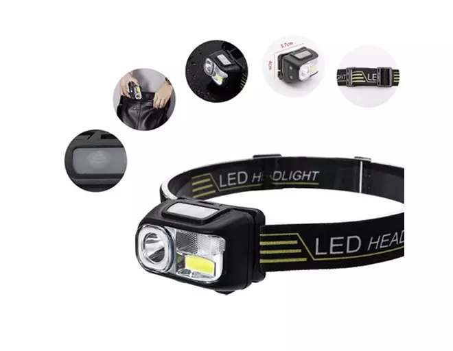 Фонарь налобный CY-2058+XPE+COB (blue+red+green), Motion Sensor, Li-Ion аккум., ЗУ microUSB
