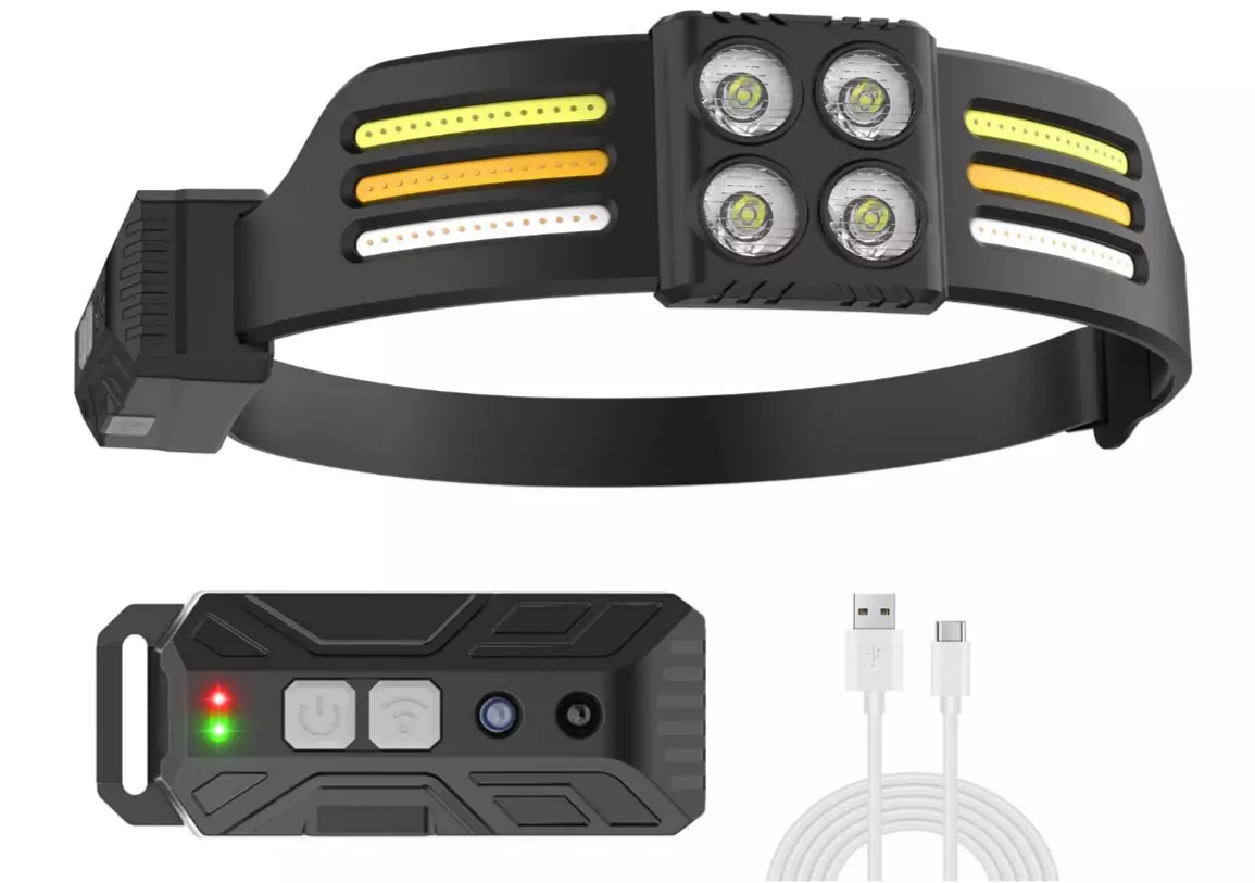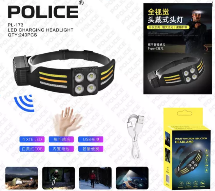 Фонарь налобный PL-173, 4*LED+3*COB, (Красный+Белый+Жёлтый), ЗУ Type-C, Сенсор
