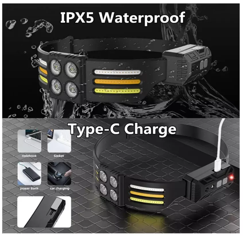 Водонепроницаемый и легкий фонарь удобно носить и подходит для разных головных размеров. IPX5 водонепроницаемость позволяет использовать его в дождливые дни.