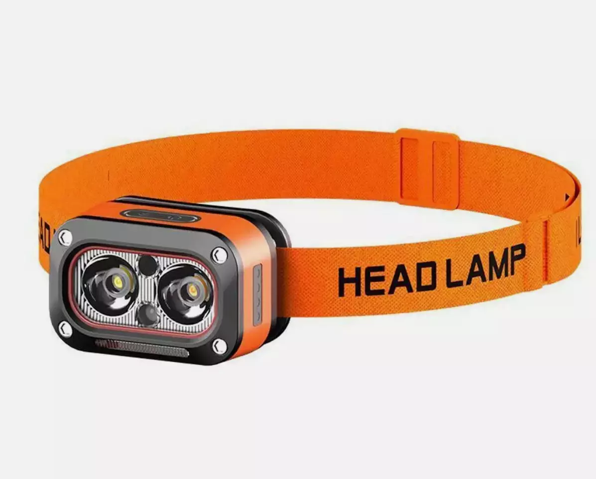 1. Мощный светодиодный налобный фонарь с двумя источниками света, предназначенный для освещения без помощи рук.
