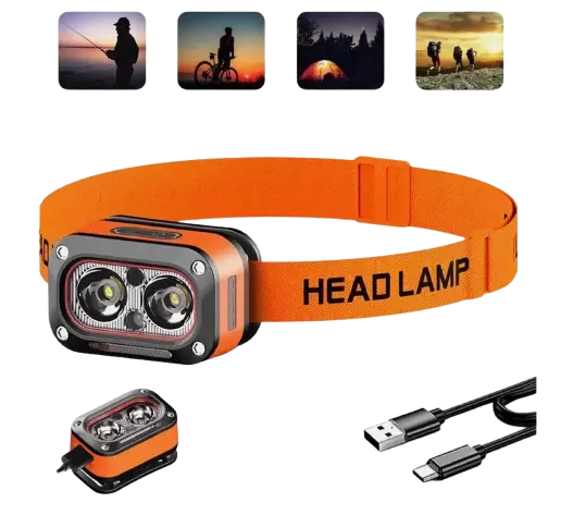 3. Многофункциональный налобный фонарь с возможностью зарядки через USB для легкого пополнения заряда.
