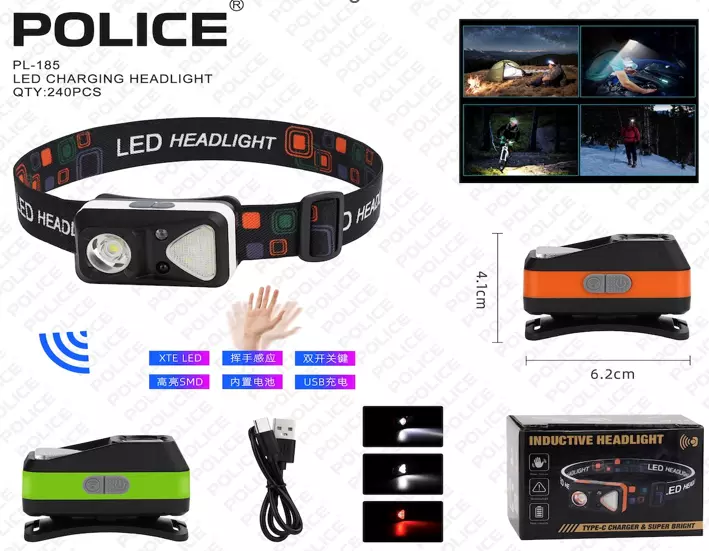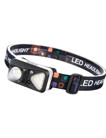 Фонарь налобный PL-185, холодный+теплый+красный свет, ЗУ Type-C, сенсор