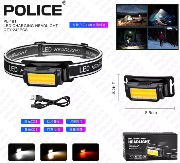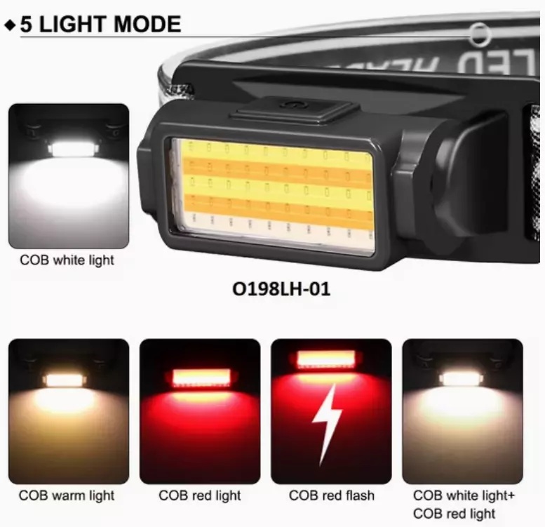 Фонарь налобный PL-191, холодный+теплый+красный свет, ЗУ Type-C, сенсор