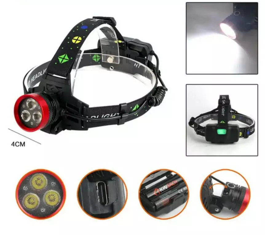 Фонарь налобный Police PL-175, 3*18650 аккум,3*XTE LED, Type-C