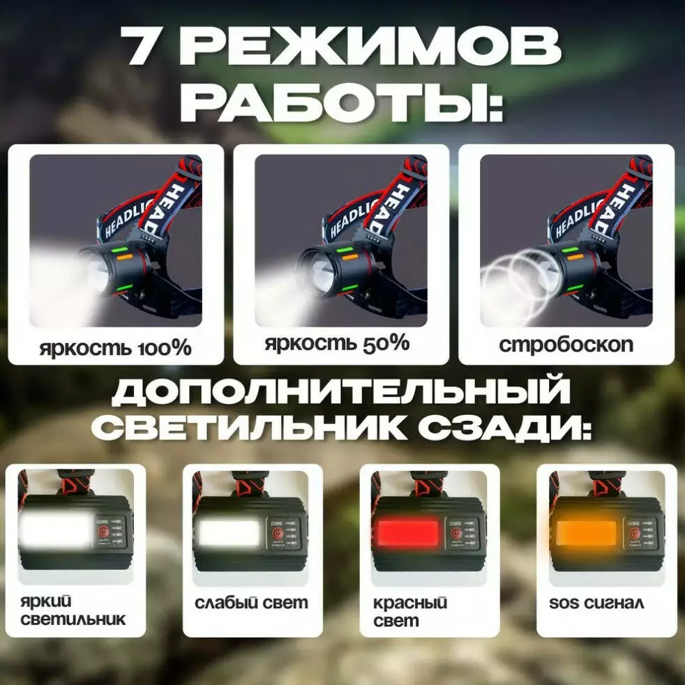 Фонарь налобный Police PL-176, 3*18650 аккум,3*XTE LED, Type-C