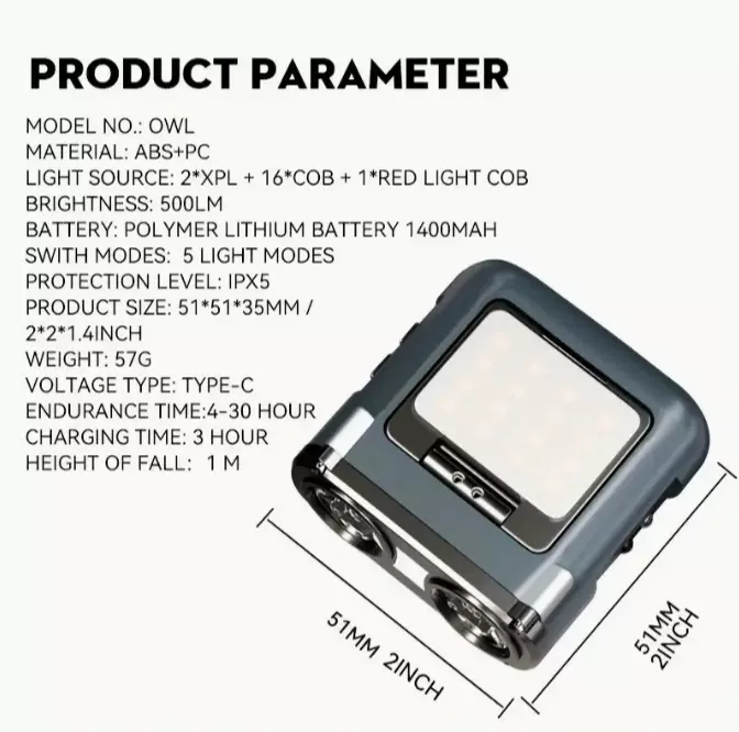 - Высокая яркость: 500LM, что обеспечивает четкое освещение в любых условиях
