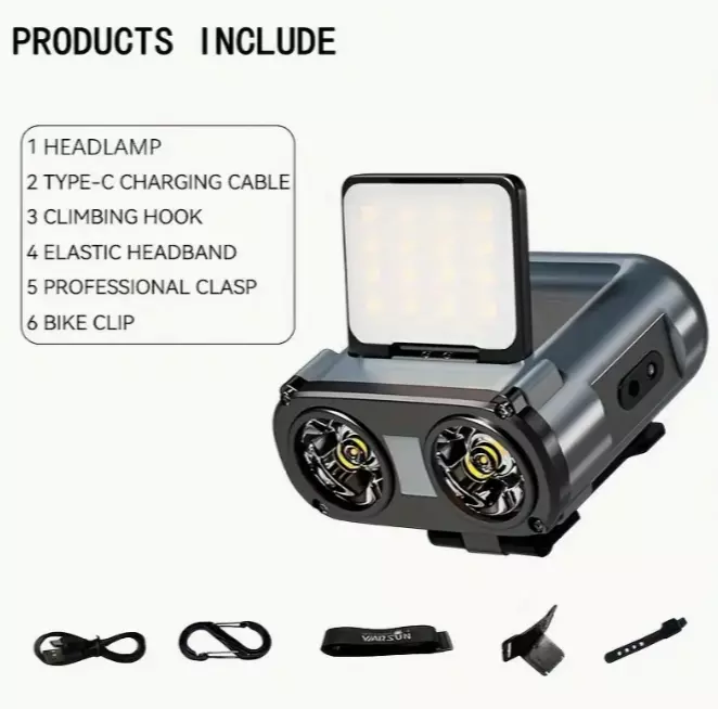Фонарь налобный Rablex RB951, красный+белый свет, 2*XPL+16*COB+1*RED COB, аккум, Type-C