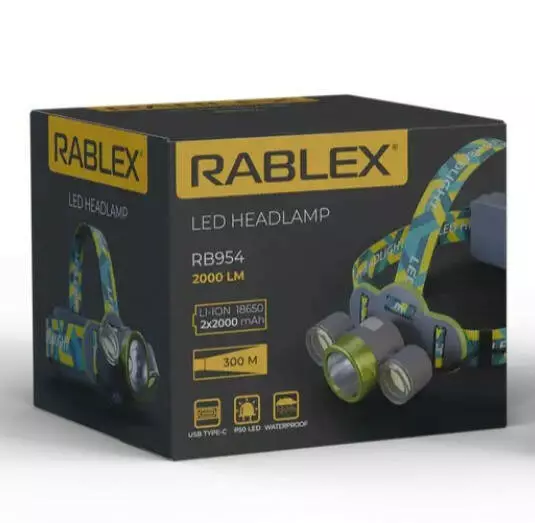 Фонарь налобный Rablex RB954, T6+2*COB, 2*18650 аккум, Type-C