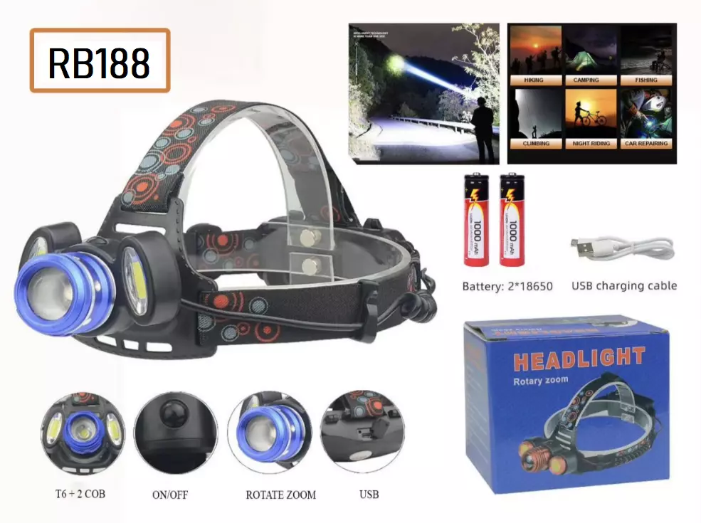 Фонарь налобный RB188/ BL-150-T6+COB / сенсорное включение/