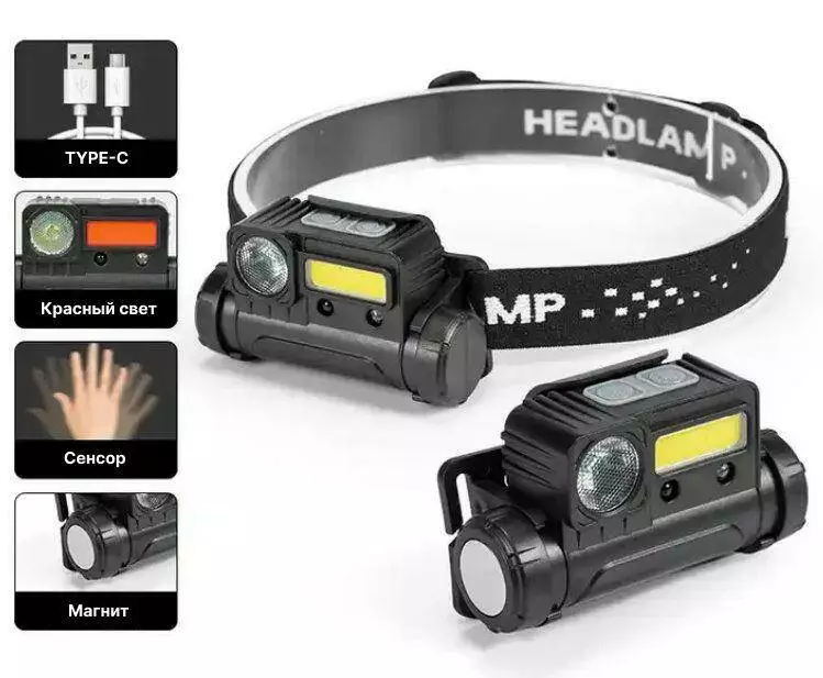 Фонарь налобный с режимом КРАСНЫЙ СВЕТ BL-123-XPE+COB (White+Red),/8137/ЗУ Type-C