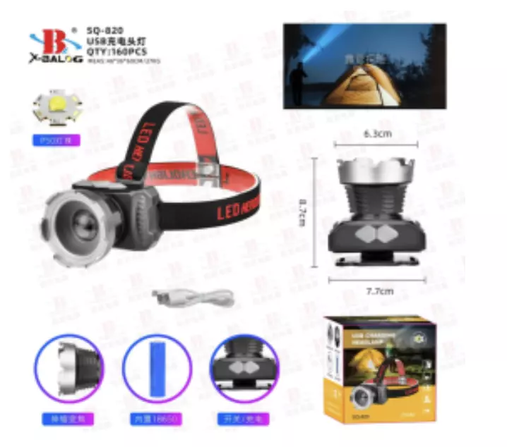 Фонарь налобный SQ-820 , 1x18650, ЗУ microUSB
