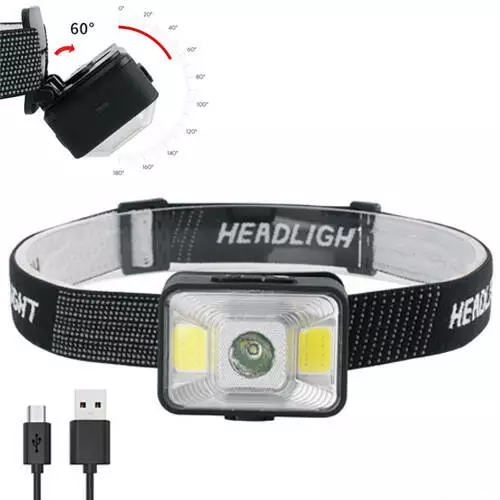 Фонарь налобный YD-21-XPE+2COB, /белый или красный свет/ЗУ microUSB,акк