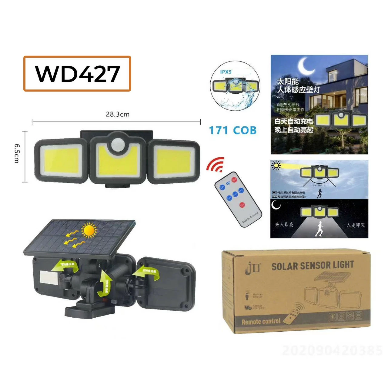 Настенный фонарь c солнечной панелью /датчик -движения-освещения JD + solar / пульт / WD427
