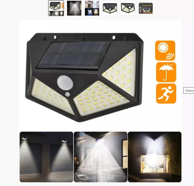 Настенный фонарь c солнечной панелью, датчик движения BK-100B COB +