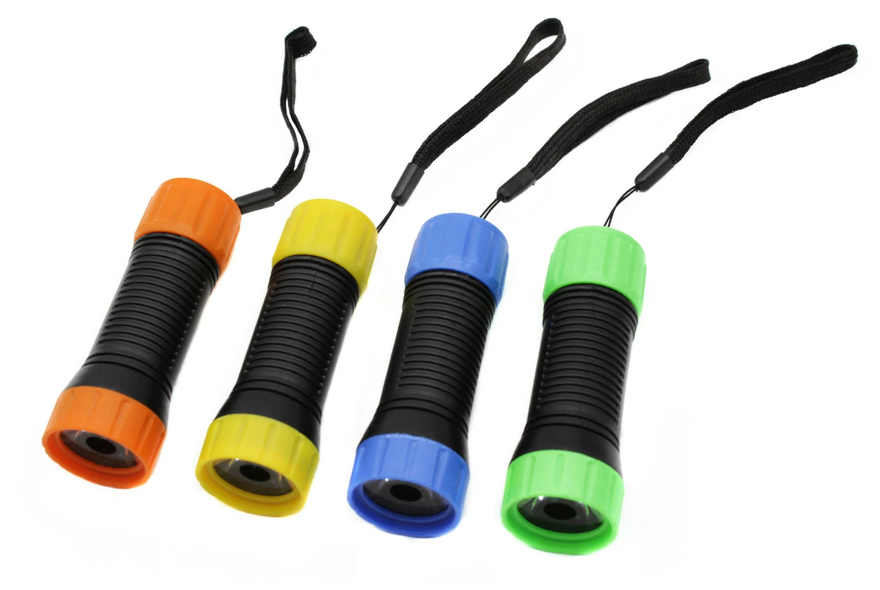 Фонарик прорезиненный на 3 R3, в ассортименте разные цвета. Размер коробки с 24 фонариками 19х12,5х10 см. Товар отпускается только оптом.