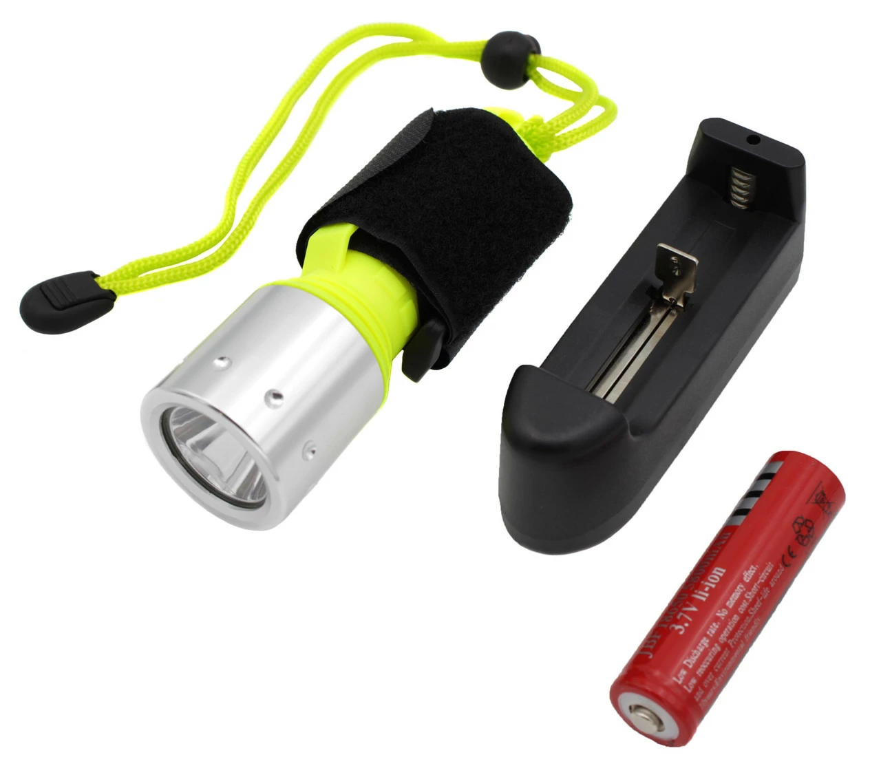 Фонарь ручной подводный PF 06-T6, ЗУ 220V, 1x18650, крепление на руку