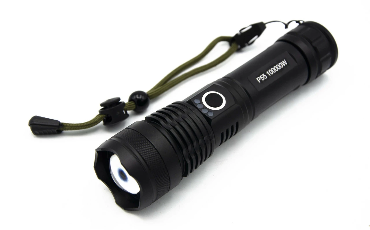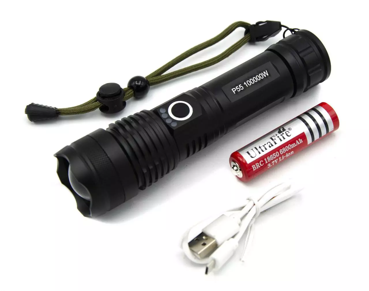 Фонарик аккумуляторный police на P50 светодиоде, с дальностью светового луча до 300 метров.