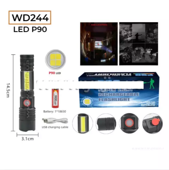 Фонарь ручной Police RB244/ P90 LED/ microUSB/ Боковая подсветка/ Zoom/