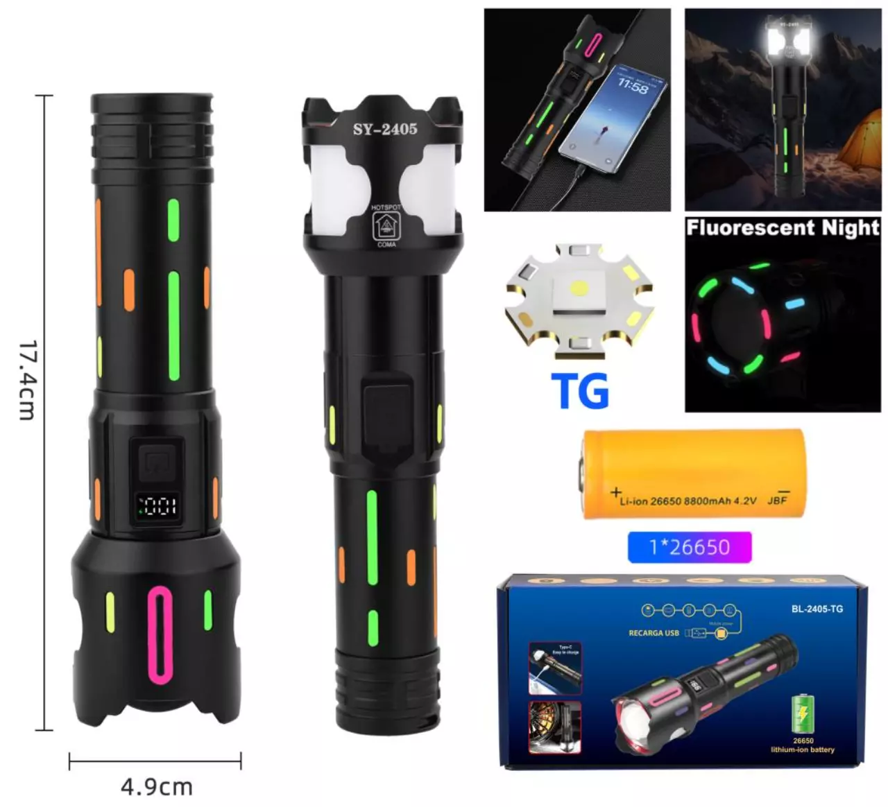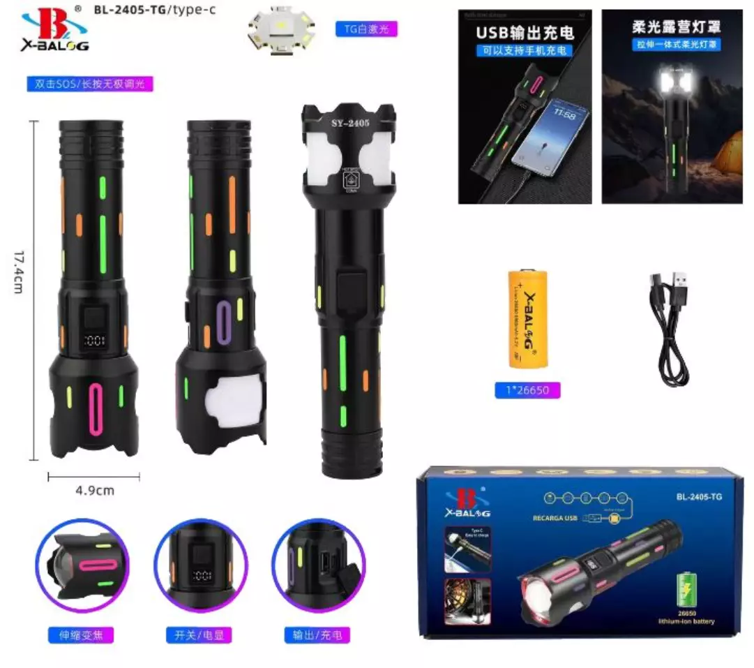 Фонарь ручной BL-2405-TG, 1x26650, power bank, индикация заряда, ЗУ Type-C, zoom