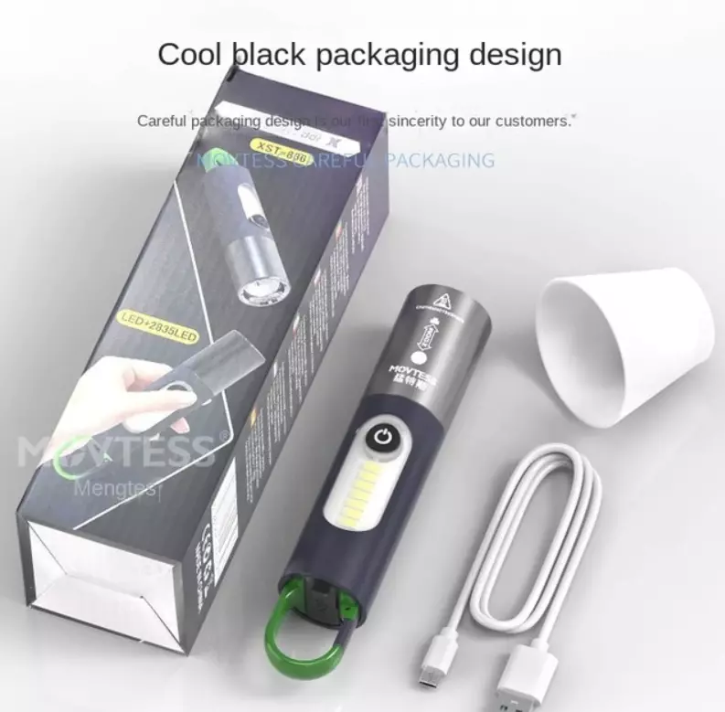 Фонарь ручной кемпинг RB271/ XST-836/ ,боковая подсветка, зум, type-c, карабин, насадка