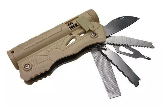 Важным преимуществом данного мультитула также встроенная батарея, благодаря которой Вы можете зарядить в экстримальных условиях телефон или рацию.