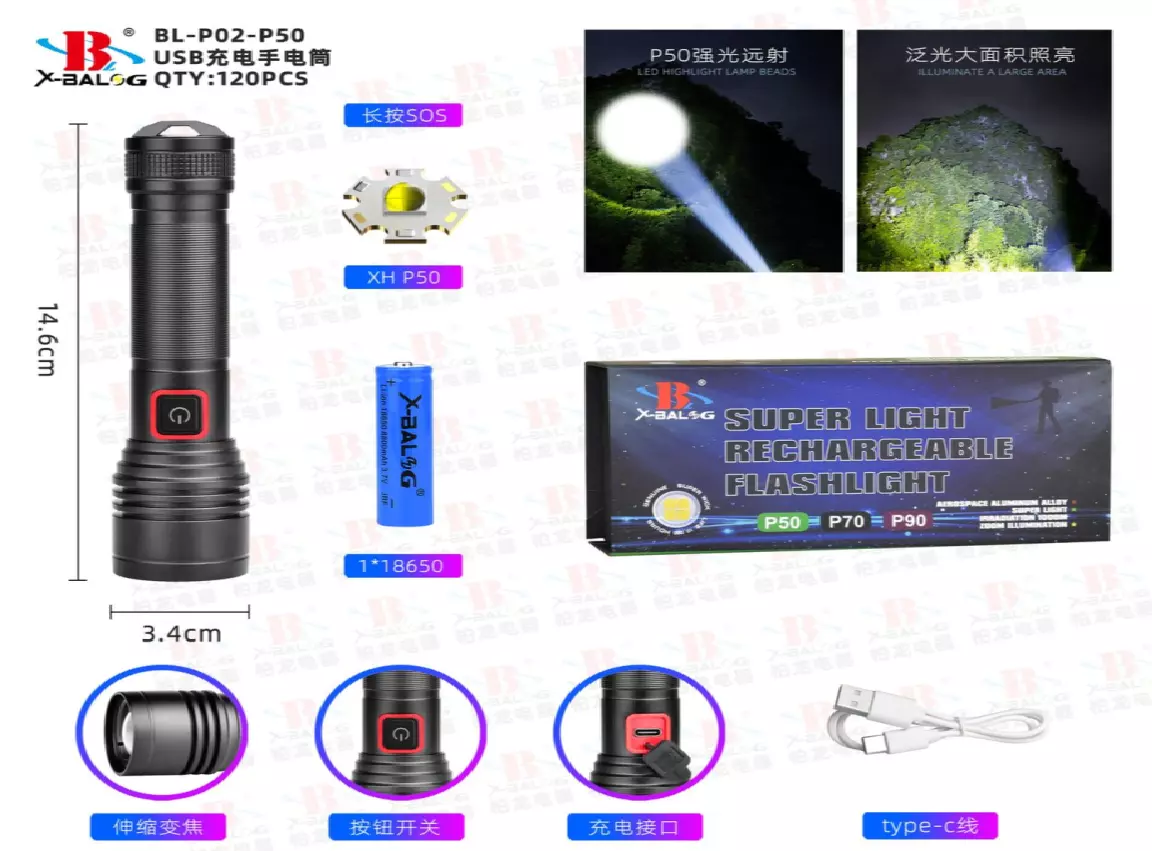 Фонарь ручной Police BL-P02-P50 /2439/ 1*18650/ USB