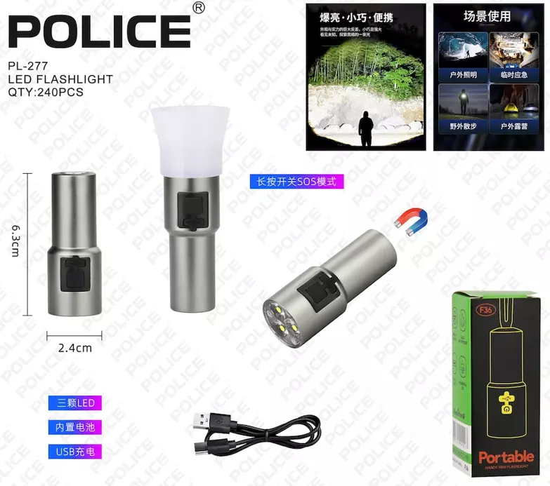 Фонарь ручной Police PL-277, F36, аккумуляторный + white/