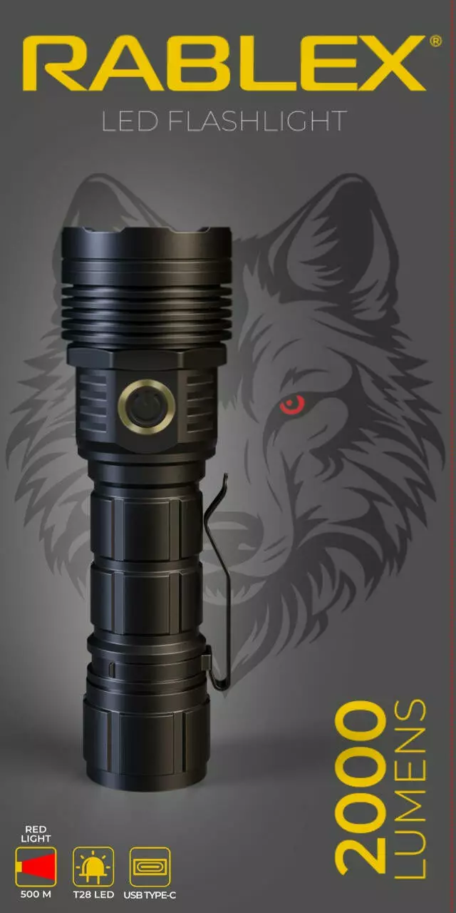 Фонарь ручной Rablex RB920 КРАСНЫЙ СВЕТ, 1*T28, 1*21700 аккум., zoom, Type-C, 2000LM