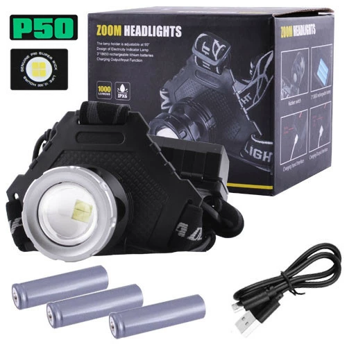 Фонарь налобный T50Pro-HP50 / 3*18650/ ЗУ MicroUSB /P50 LED/ Zoom/ Крепление на голову