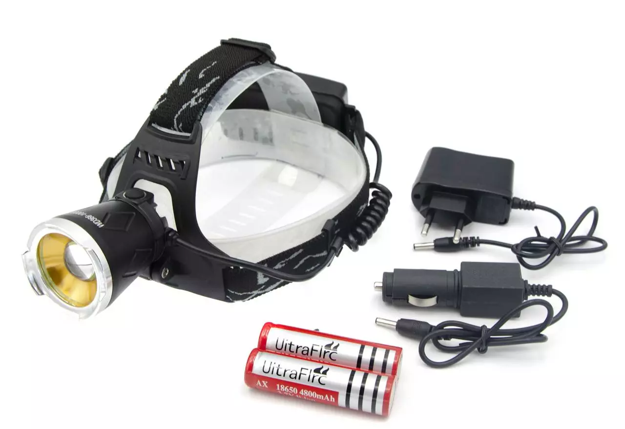 Фонарь налобный WD111 /2*18650 Акк./ T6+XPE /ультрафиолет / Zoom/MicroUSB ЗУ/ Крепление на голову