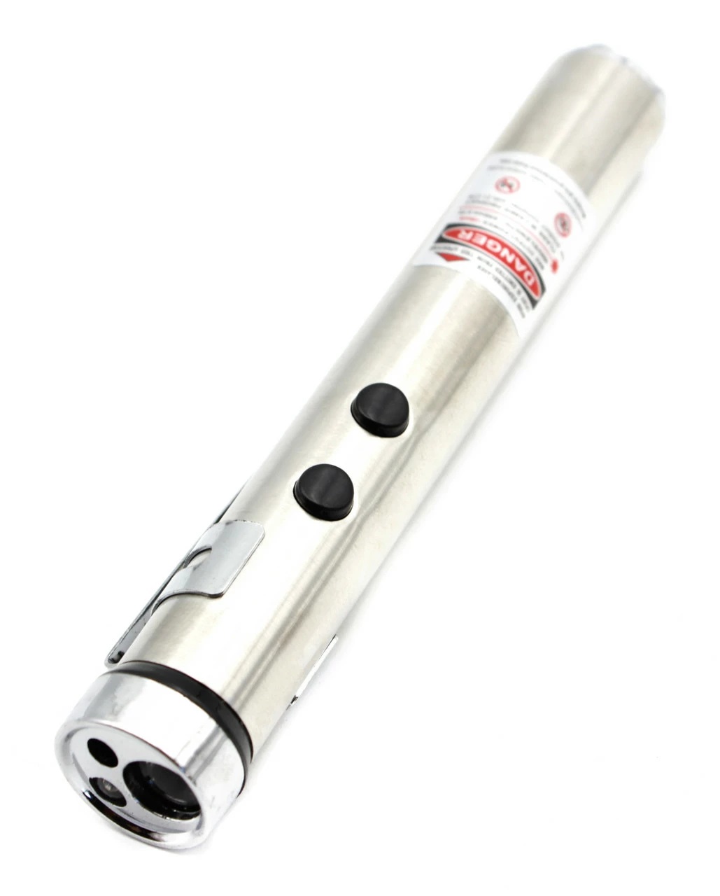 Фонарик с лазером и ультрафиолетом металлическая на 1 R6, на 3 LED диоде. Продается только оптом. В коробке 24 фонарика. Карманный фонарик имеет размер 9,5х3 см.