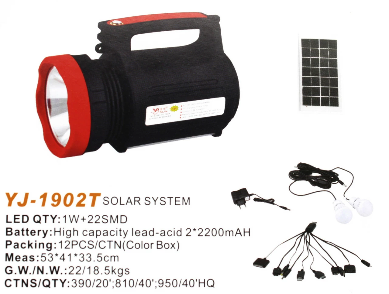 Фонарь Yajia YJ-1902T/ 5W+22SMD LED/ Power Bank/Солнечная панель/ Led лампочки/