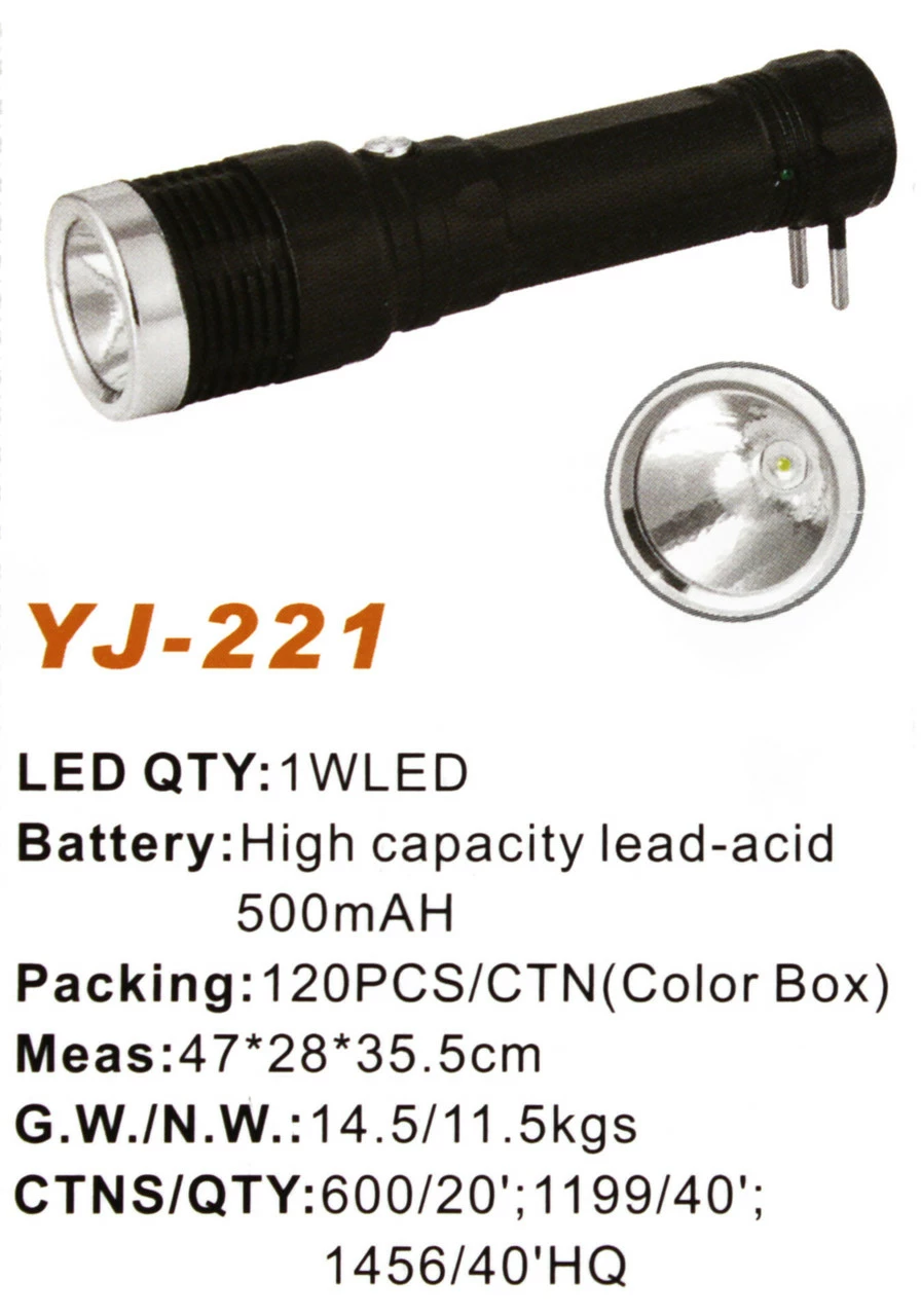Фонарь аккумуляторный Yajia YJ-221 относится к приборам ручного типа, имеет небольшой вес, компактные размеры. Зарядка фонарика осуществляется посредством выдвижной вилки от сети 220 Вольт. Аккумулятор имеет мощный ресурс работы, его емкости хватает на несколько часов автономной работы. При небольших размерах прибор имеет отличные показатели дальности светового потока (50 метров).