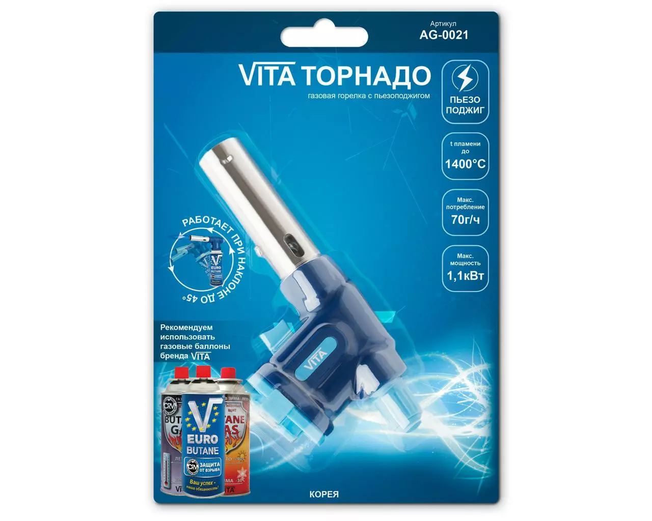 Горелка газовая Vita AG-0021 "Торнадо" / Пьезоподжиг